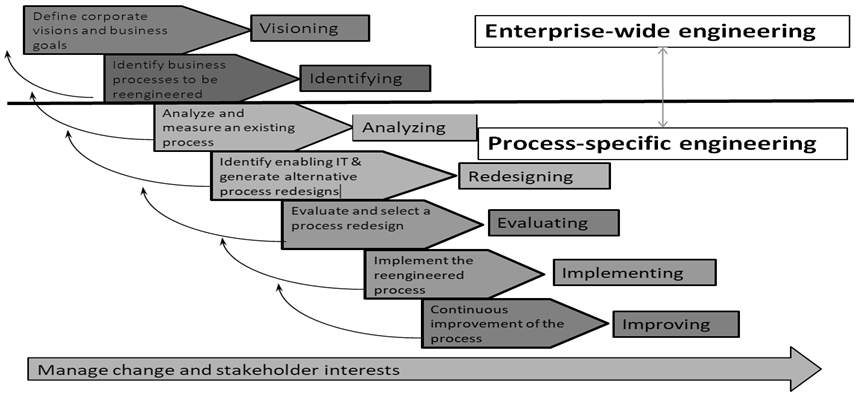 The fundamental rethinking and radical redesign of core business processes to achieve dramatic improvements in critical performance measures such as quality, cost, and cycle time.